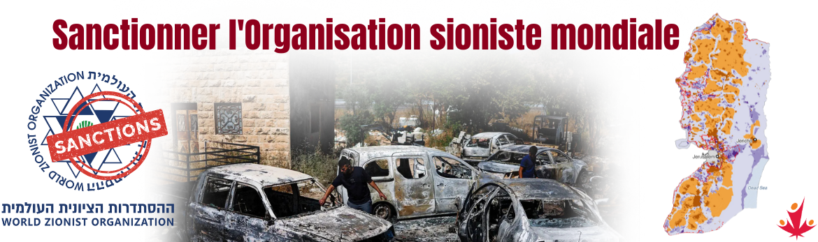 Ces avant-postes sont soutenus par la division des colonies de l'Organisation sioniste mondiale (OSM). Depuis plus de 125 ans, la OSM se consacre à la colonisation de la Palestine et à l'effacement du peuple palestinien. Les pratiques meurtrières actuelles de sa division des colonies ne sont qu' s les abus les plus récents de leur histoire sordide visant à voler toutes les terres palestiniennes